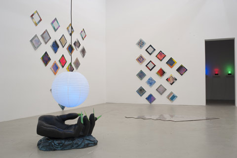 NAILS 2011 manpulierte gefundene Objekte, Papierlampenschirm, farbwechselnde Glühbirne 60 x 80 x 120 cm
