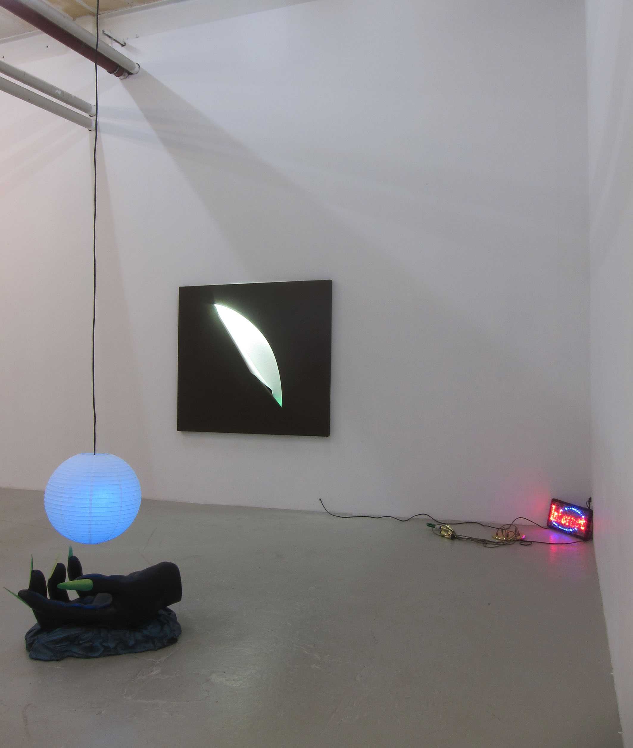 UNTITLED, 2011 Acryl auf Leinwand, Weiße und Grüne Neon Birnen 160 x 150 cm