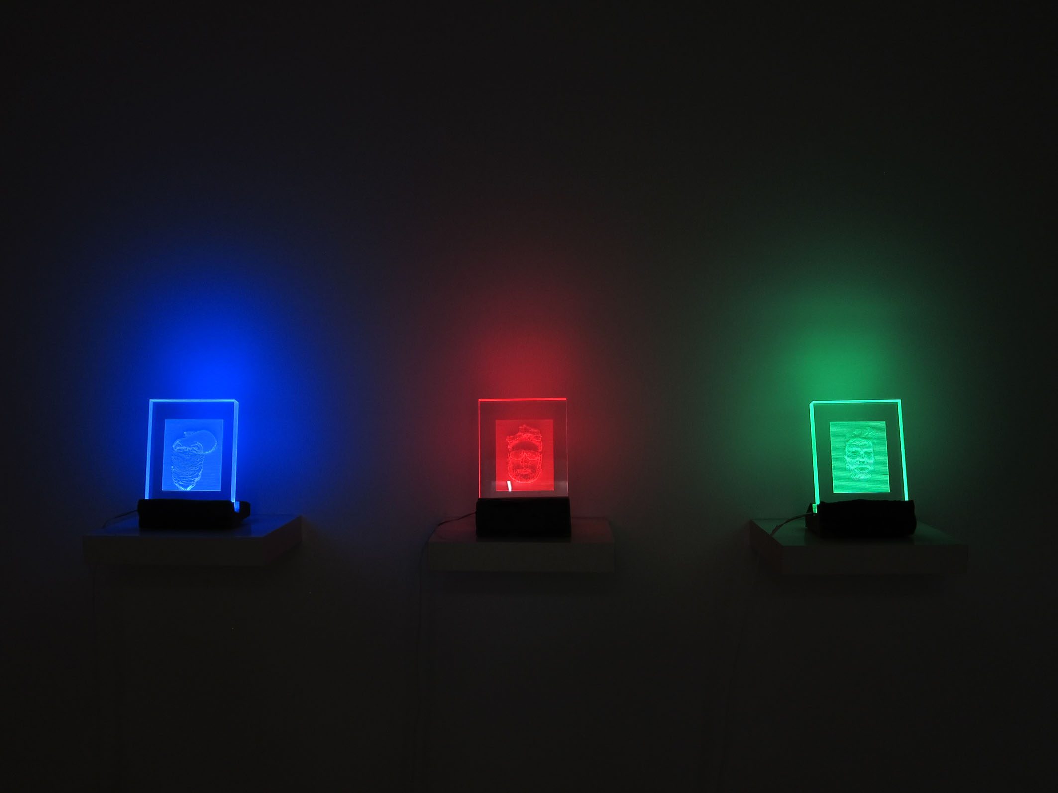 he native, the immigrant and the between, 2011 Acrylglas, LED, Holz je 18 x 24 cm