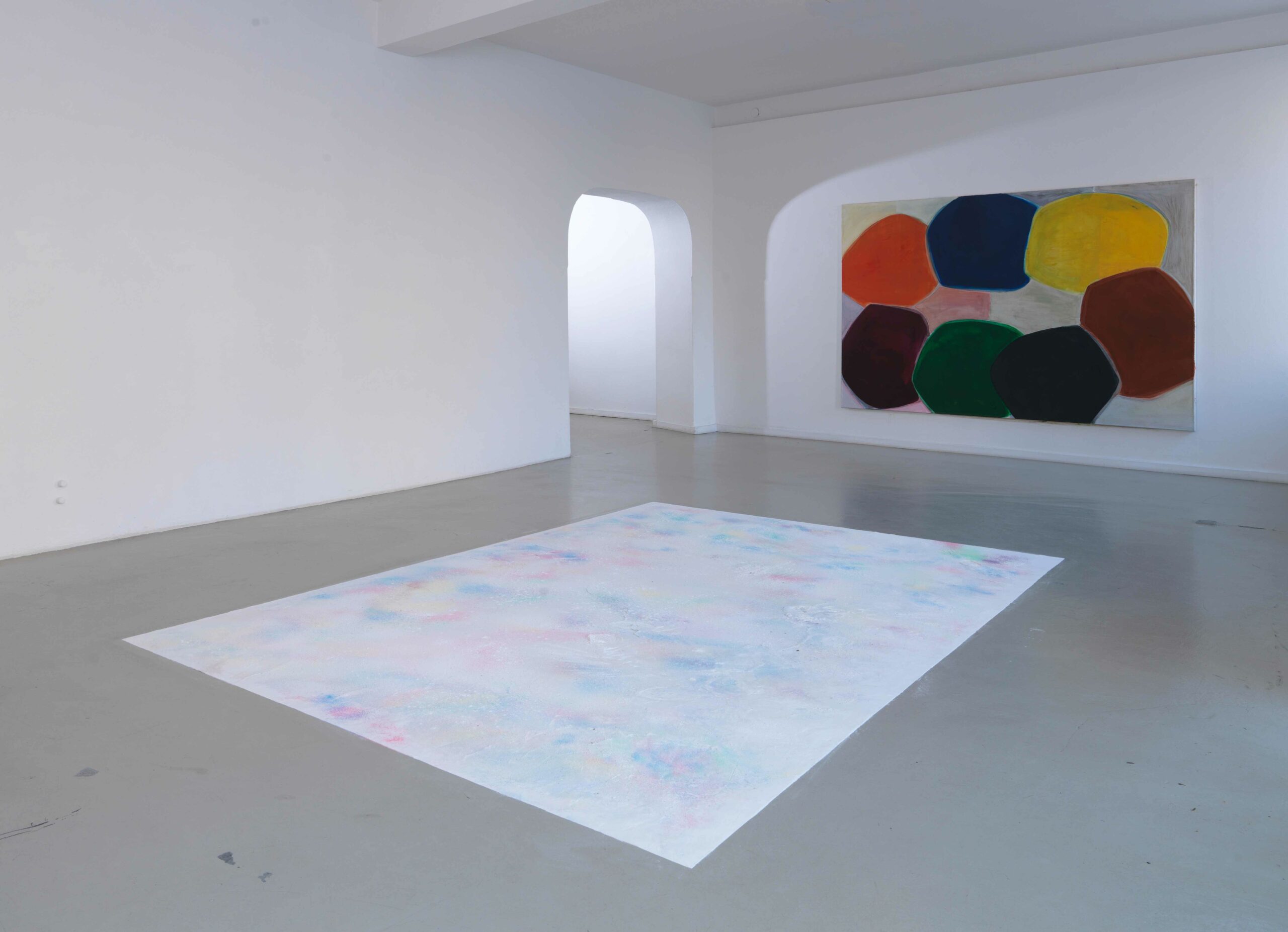 C. P. Pallares` work investigates a historical tradition in painting and it’s substrate reaching from murals of early cave painting and churches, over painting on canvas to the digital image as video projection in a space. Her aesthetic for color relates strongly to the materials in use and stands in connection with the beginnings of abstract painting and their references to Abstract Expressionism as well as the traditions of Post Minimal Art of the 1960s and 1970s, Land Art and Performance Art.3 Within this mode of painting a network of shapes, colors and lines arises within the two- and three-dimensional pictorial space. This network encloses personal and photographic memories of the artist, the specific exhibition setting and the inherent logic of colors.